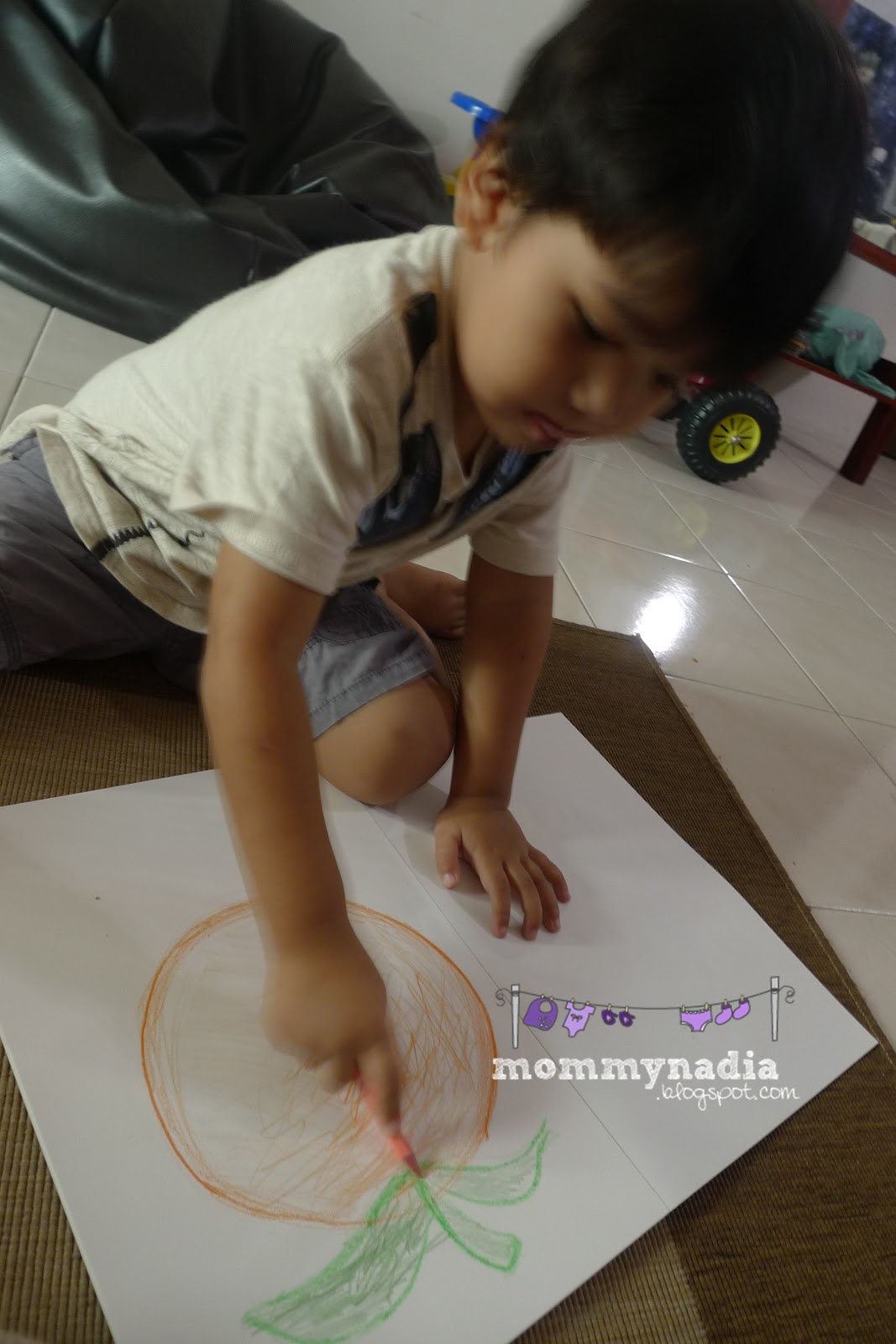 Really had fun during the activity. Good to practise his motor skill specially on handling the scissors and creativity to cut and paste the paper. Yang penting Adam enjoy. Sometimes we did the activity before he go to sleep, in half an hour dah siap. And to have it more peaceful, the lil rascal Ryan kena tidur dulu. Kalau tak, karang dia yg duduk atas sketching book tu. We planned for more cut and paste activity over the weekend. Animals pulak next time k.;)